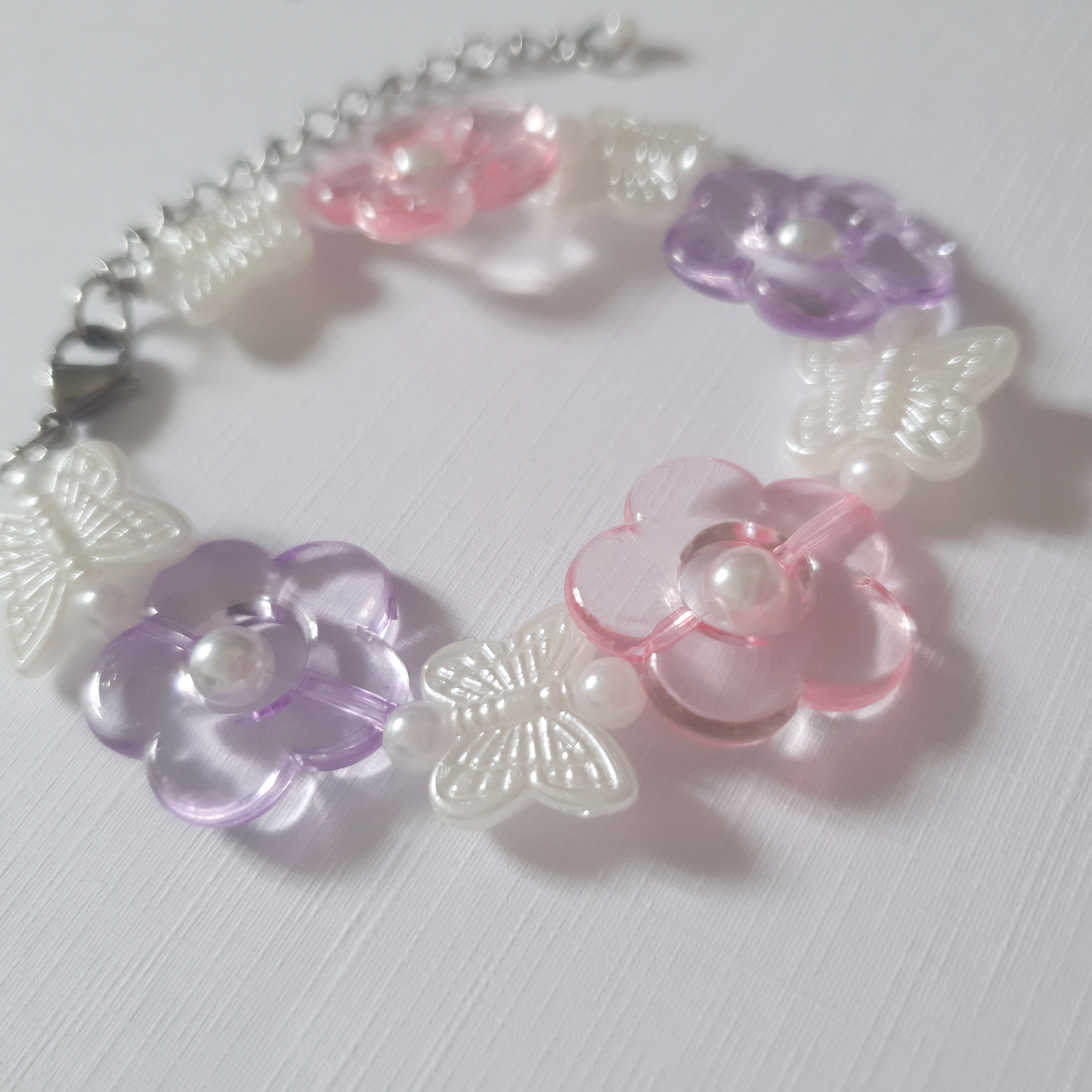 [Spring Collection] Pink and Lilac Flowers and Butterfly Bracelet ?